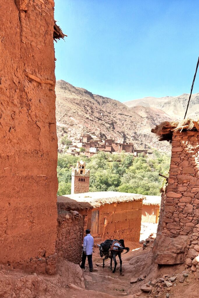 Nos gustaría comenzar este artículo expresando nuestro máximo amor y respeto por los diferentes valles del Altas, lugar donde tenemos la suerte de vivir y echar raíces. Somos conscientes de que en el Marruecos rural la ausencia de trabajos bien remunerados, la inexistencia de servicios médicos adecuados para la población local y la ausencia de servicios de transporte continuado de una aldea a otra, hace que las personas que viven en los diferentes pueblos y comarcas tengan que ingeniárselas para lograr sus medios e ingresos económicos para sus familias. Y es ahí donde en muchas ocasiones, aparecen las mulas de trabajo en las montañas del Atlas. Desde que una mula sea el vehículo para moverse entre diferentes Valle, y por ende, vaya cargada de todo lo necesario para el viaje, hasta que una mula sea la que acompañe una ruta de montaña de varios días. Es por eso que, en la mayoría de ocasiones, se les trata muy bien a esos animales que son un miembro más de la familia, un miembro que aporta a su manera al bienestar de la comunidad.
